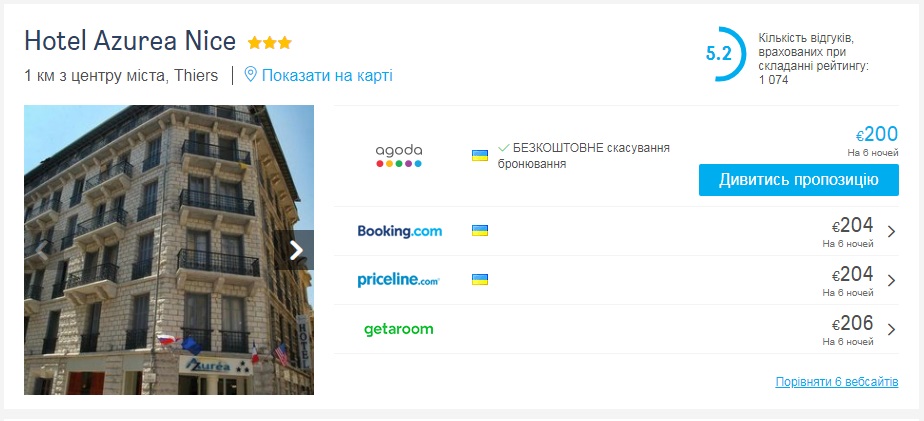 Приклади бронювання житла у Ніцці на період 11.02.2020 — 17.02.2020, 6 ночей: