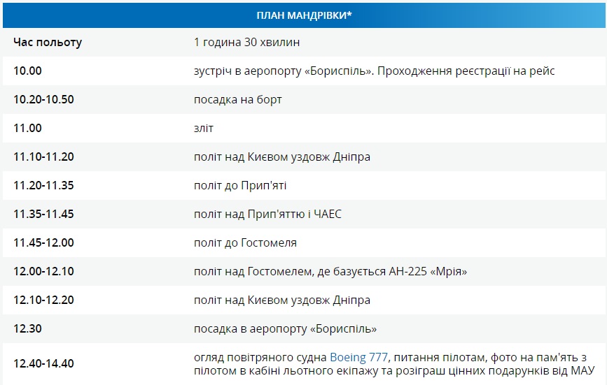 Вартість квитків – 2970 грн ($106). В ціну включена – екскурсія на борту Boeing 777, питання пілотам, фото на пам’ять та розіграш подарунків.