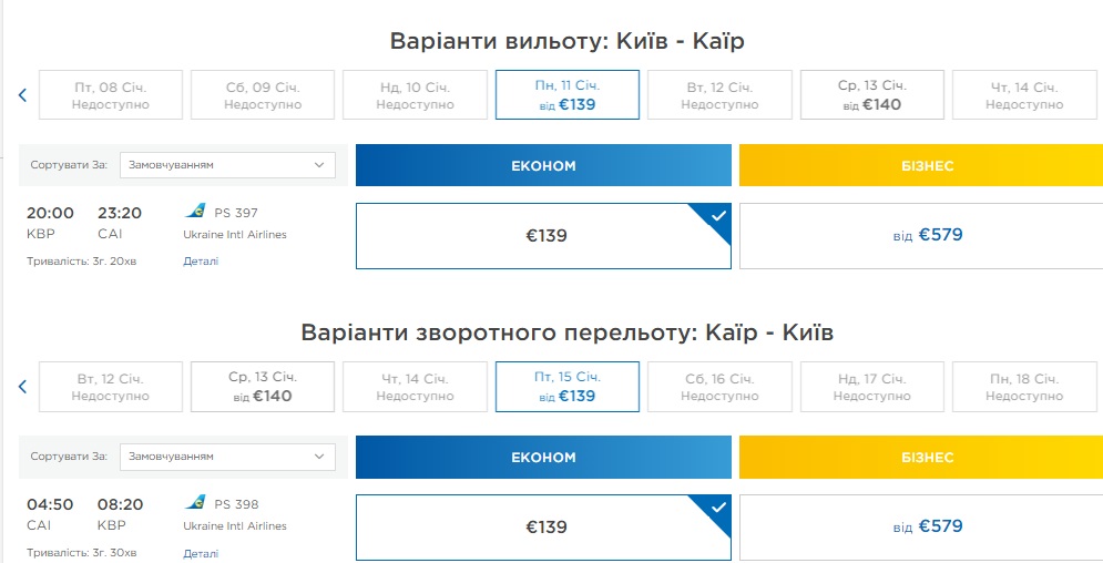 Рейси до єгипетської столиці заплановано щопонеділка та щосереди. Вартість квитків – від €139 в один бік або €278 туди-назад.