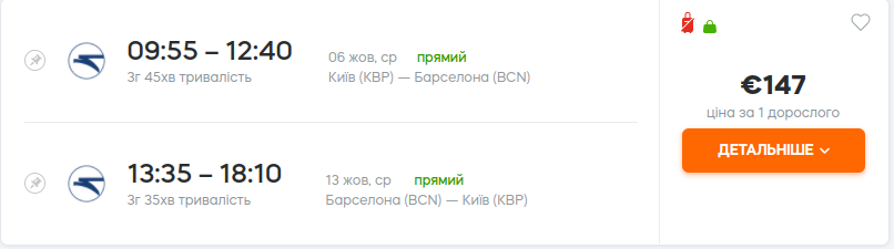 Вартість квитків Київ – Барселона — від €72 в один бік або €147 в обидві сторони. Рейси виконують з “Борисполя” в барселонський аеропорт “Ель-Прат”.