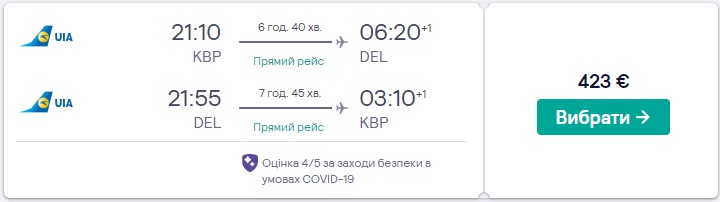 Київ-Делі-Київ (23.06.2021 – 07.07.2021) – €423