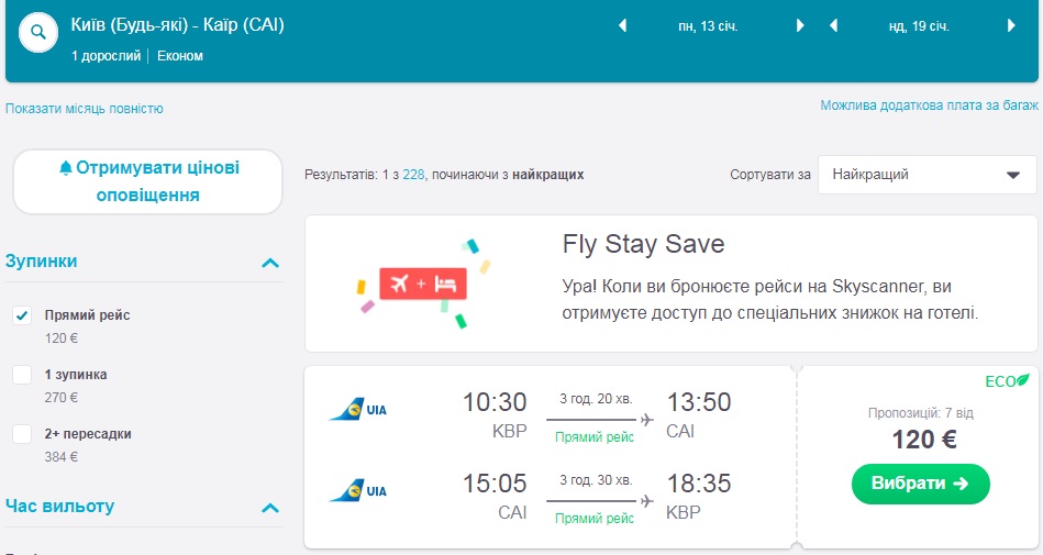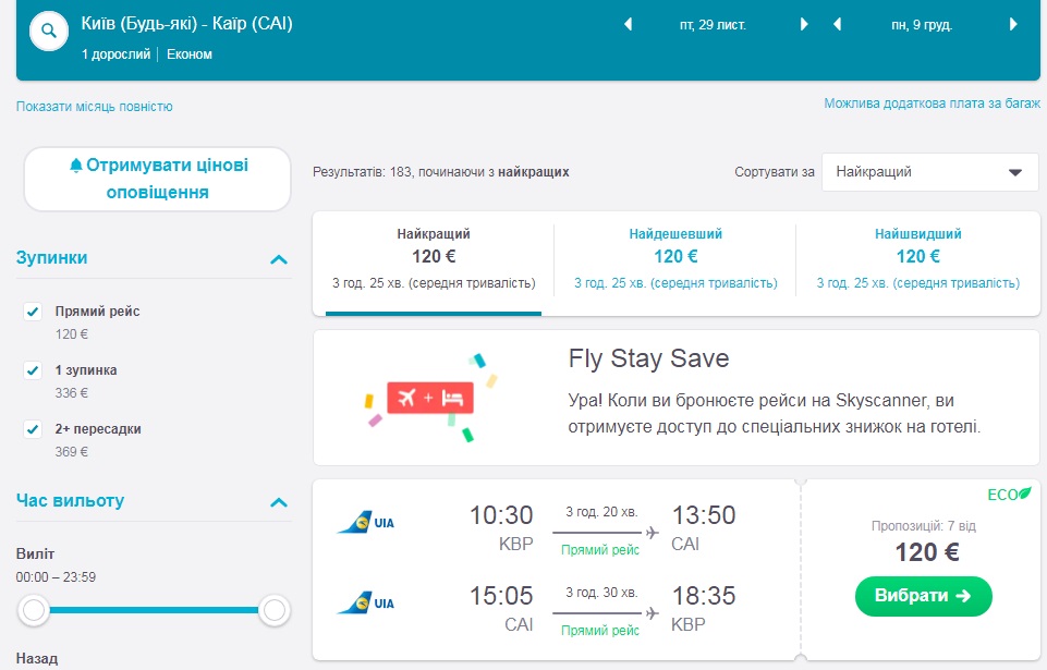 Skyscanner.com — пошук та відслідковування цін на авіа