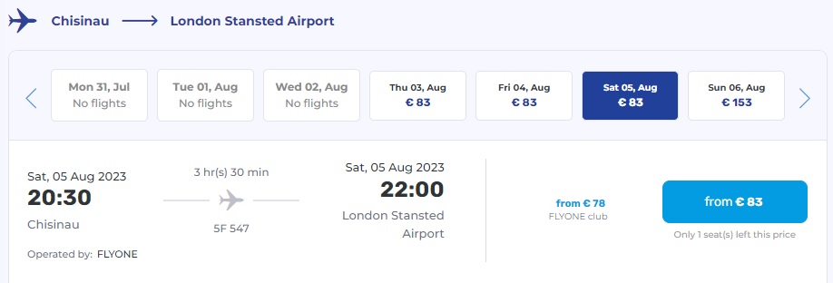 Кишинів – Лондон (05.08.2023) – €83