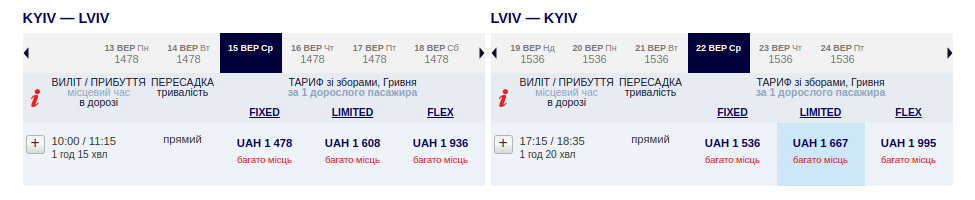Київ – Львів – Київ (15.09.2021 – 22.09.2021) – ₴3014