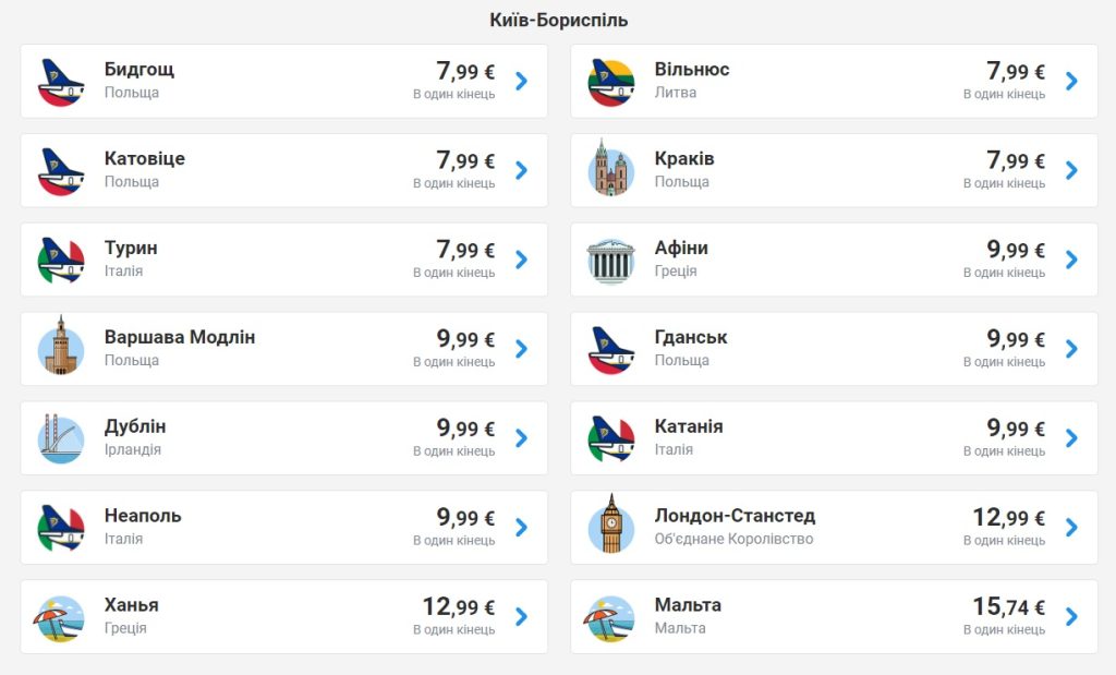 Доступні дешеві перельоти з України до Італії, Греції, Польщі, Німеччини, Литви, Великобританії та інших країн.