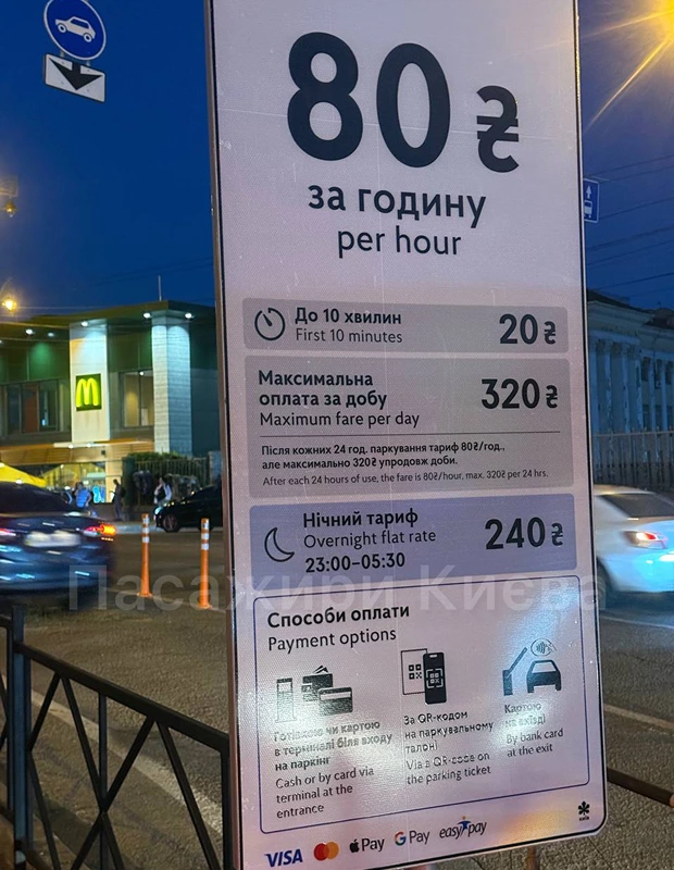 - Ціна нового паркінгу: 80 грн/година, 320 грн/доба.