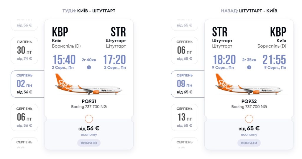 Київ – Штутгарт – Київ (02.08.2021 – 09.08.2021) – €121