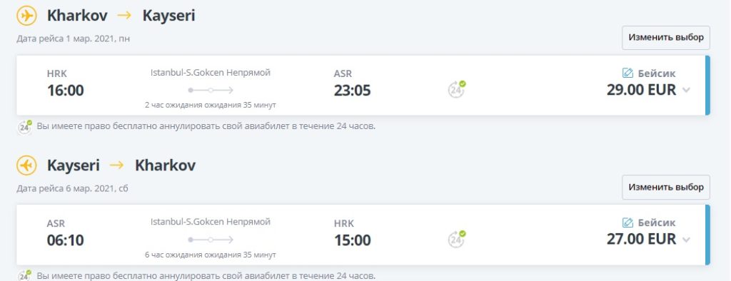 Харків – Кайсері – Харків (01.03.2021 – 06.03.2021) – €56