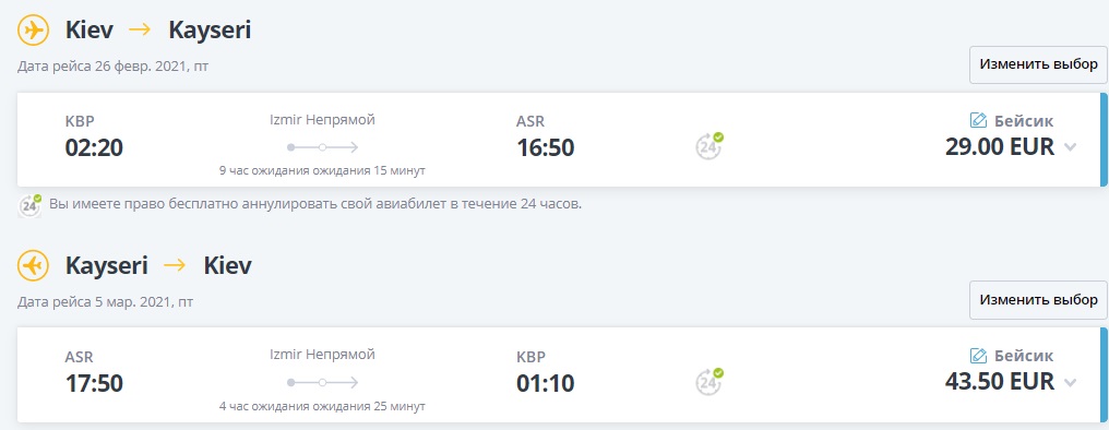 Київ – Кайсері – Київ (26.02.2021 – 05.03.2021) – €72