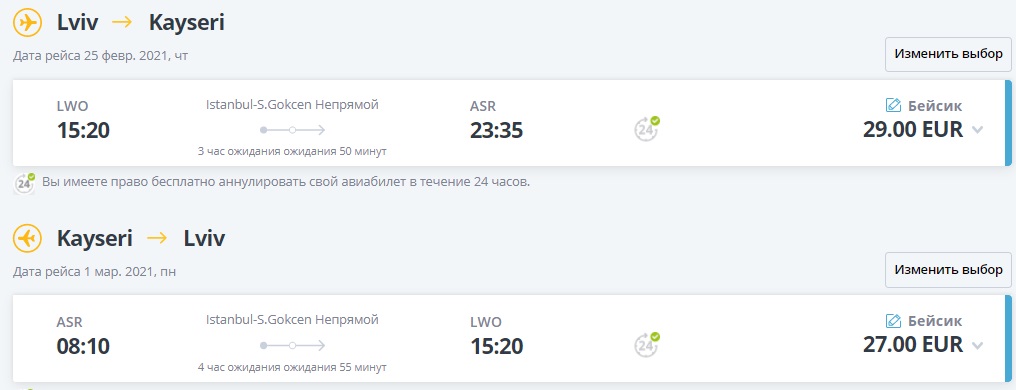 Львів – Кайсері – Львів (25.02.2021 – 01.03.2021) – €56