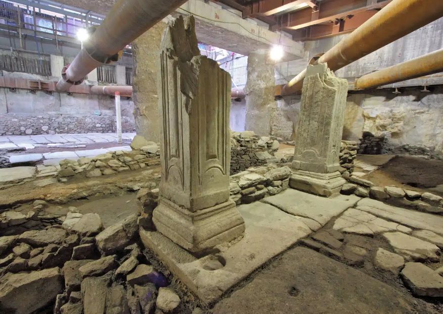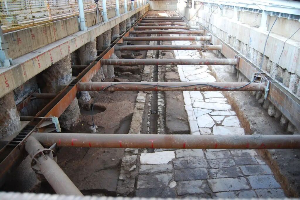 Команда, яка проводила розкопки на станції Venizelos, виявила декуманус, дорогу зі сходу на захід, яка була однієї з головних магістралей через місто. Також виявлено візантійський проспект та залишки будівель 15-17 століття.