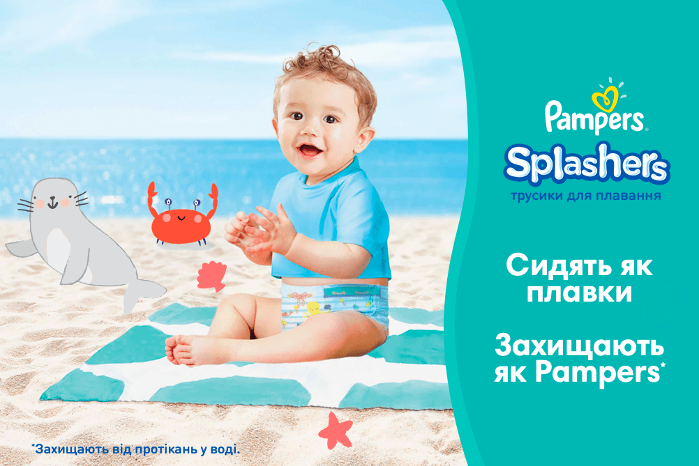 Трусики Pampers Splashers не набрякають у воді як звичайні підгузки, залишаючись зручними для малюка, вологі чи сухі. Тож малюк може бризкатися у воді скільки завгодно! Для надійного захисту у воді, подвійні манжети від протікань Splashers щільно облягають ніжки, утримуючи випорожнення, тому вони ідеально підходять для басейну, пляжу, аквапарку і т.п. Pampers Splashers прилягають, наче, плавки, легко надягаються та знімаються, навіть, коли мокрі. На трусиках для купання Splashers є бокові вставки, що легко розриваються, тож їх легко швидко зняти, не забруднившись. Дізнатись більше про продукт.