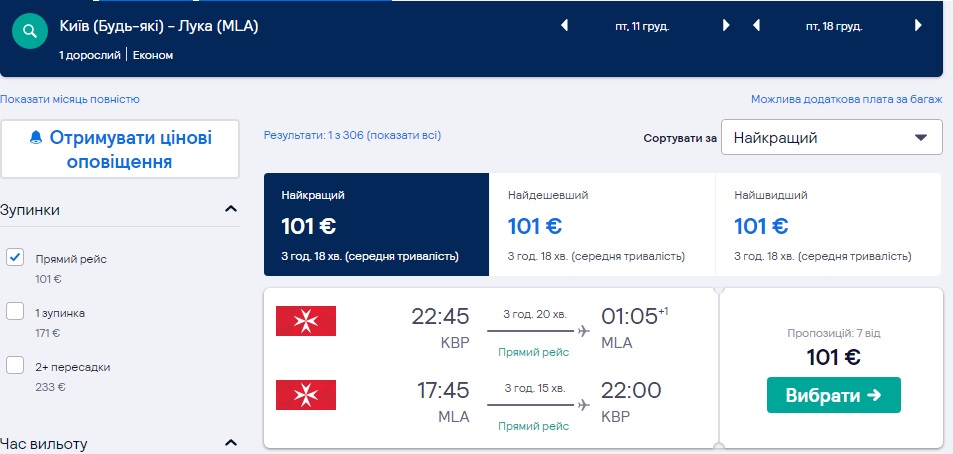 Авіакомпанія Air Malta розпродає квитки з Києва на о. Мальта – від €101 в обидві сторони на новорічні та різдвяні свята.