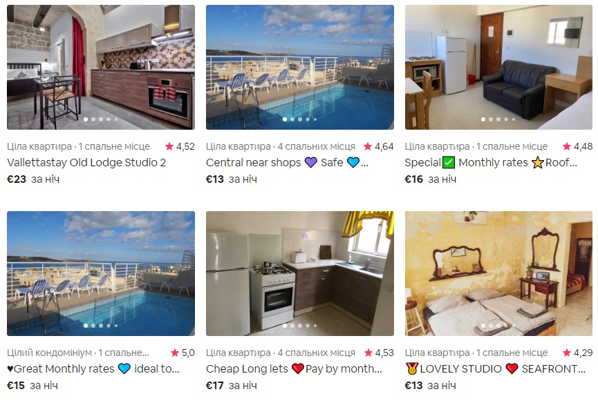 Приклади бронювання житла на Мальті на період 25.12.2020 — 01.01.2020, 7 ночей: