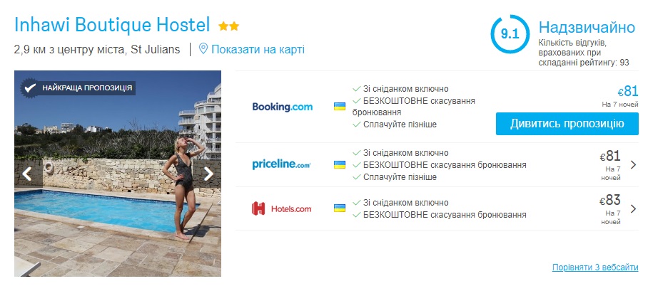 Щоб не переплачувати комісій радимо порівнювати ціни на Hotelscombined.сom.