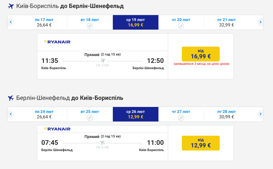 Приклади бронювання Київ – Берлін від €17 в один бік