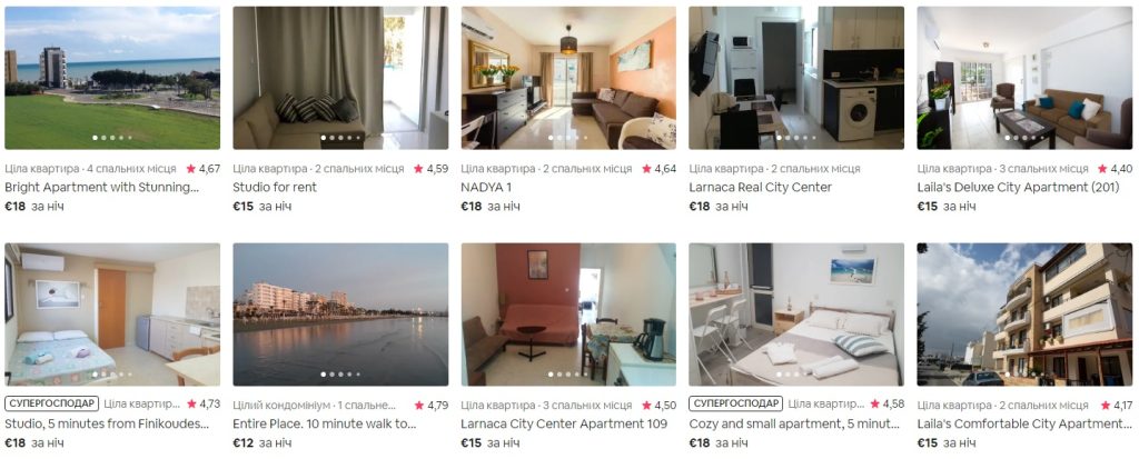 Приклади бронювання житла на Кіпрі на період 21.12.2020 — 01.01.2021, 11 ночей: