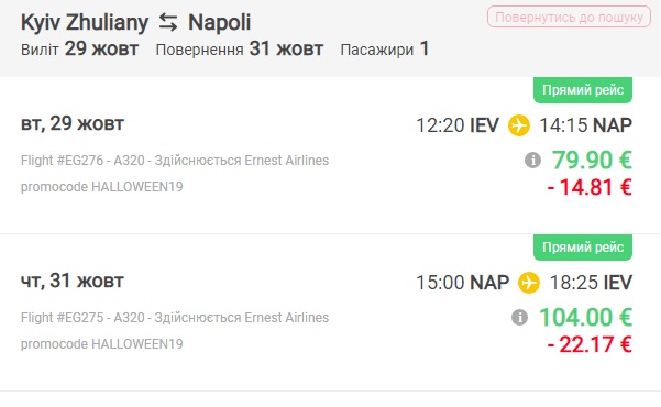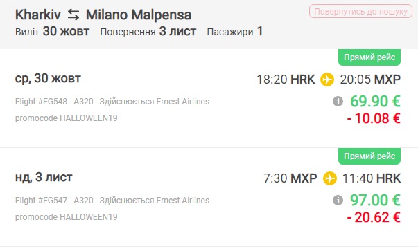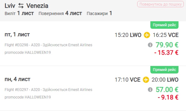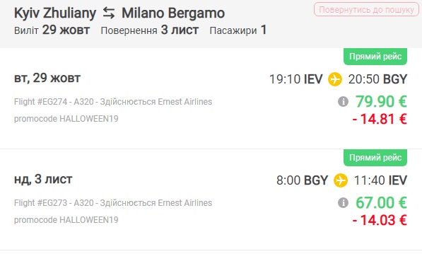 Італійський лоукост Ernest запустив розпродаж квитків зі знижками до 30% з України до Італії на святкування Хелловіну.