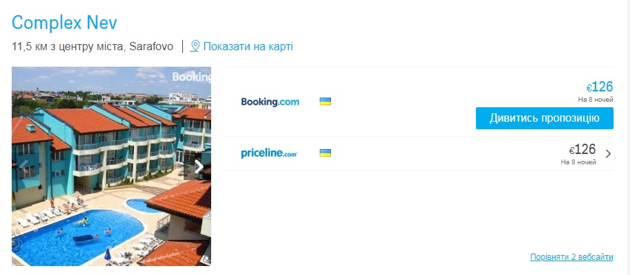 - Hotelscombined.сom — порівняння цін на готелі