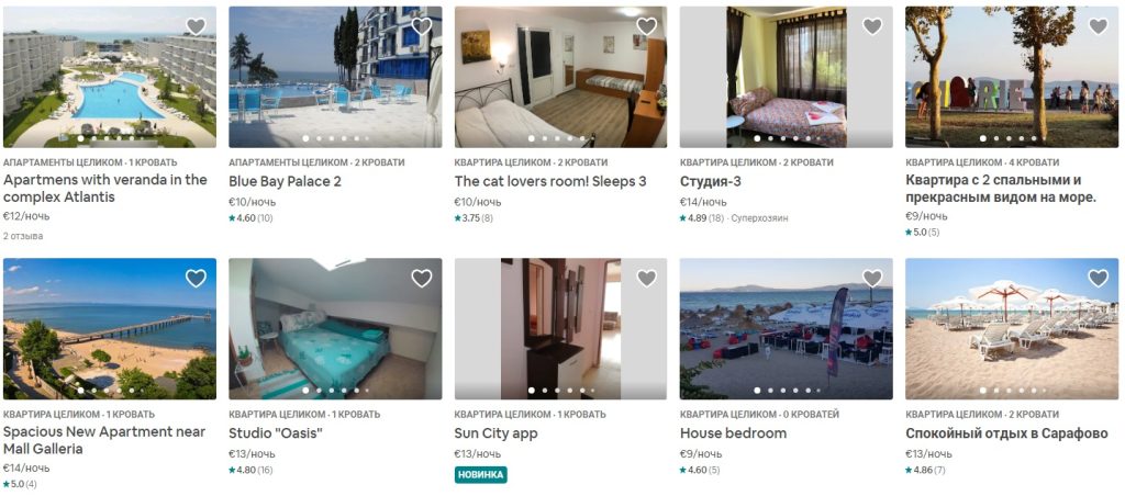 Приклади бронювання житла у Бургасі на період 20.09.2019 — 28.09.2019, 8 ночей: