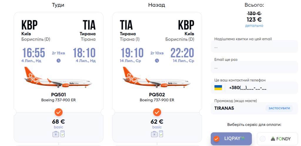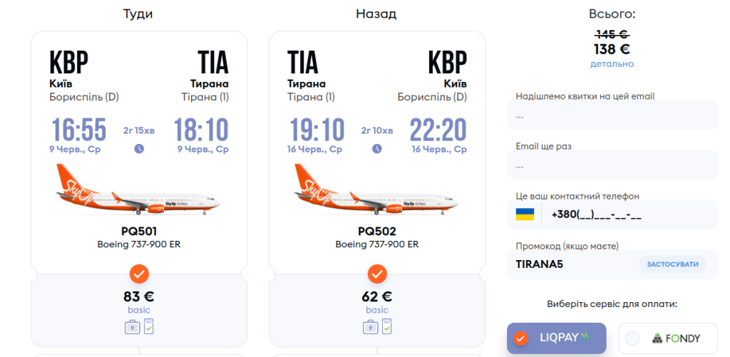 До запуску льотної програми, у SkyUp підготували знижки. За промокодом “TIRANA5” – знижка 5% на всі рейси з України до Албанії. Промокод доступний тільки на рейсах Київ – Тирана.