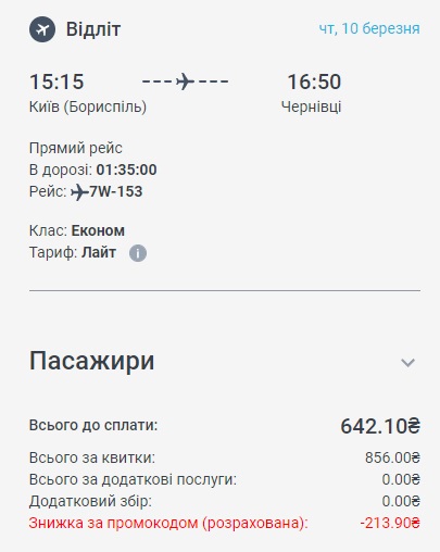 Пропозиція діє на прямі перельоти з Києва в Чернівці, Миколаїв та Ужгород.