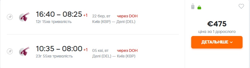 Київ – Делі – Київ (22.03.2022 – 05.04.2022) – €475