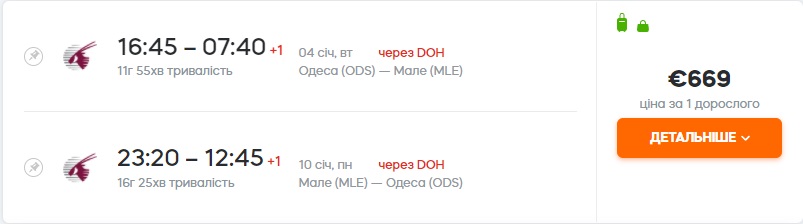 Одеса – Мальдіви – Одеса (04.01.2022 – 10.01.2022) – €669