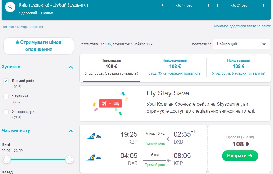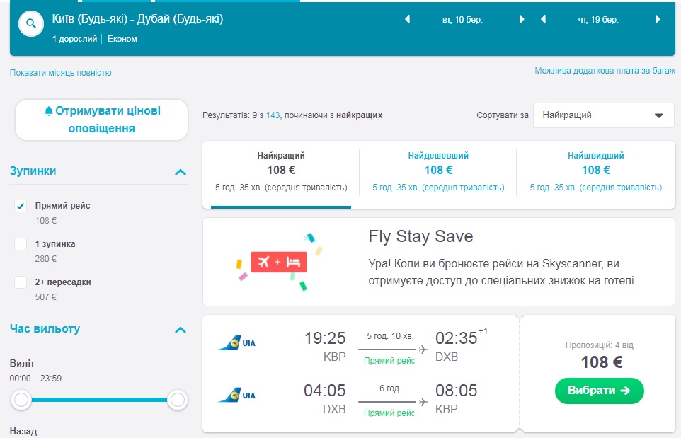 Київ-Дубай-Київ (10.03.2020 – 19.03.2020) – €108