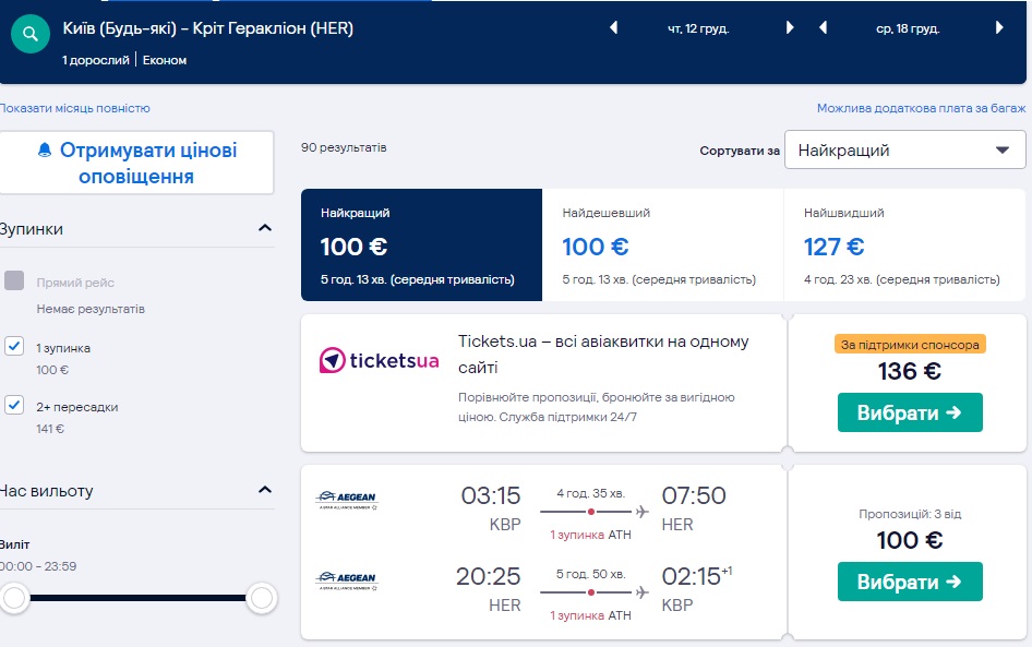Київ-Іракліон-Київ (12.12.2019 – 18.12.2019) – €100