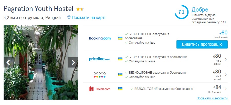 Для бюджетного проживання – Pagration Youth Hostel – від €80 за місце у хостелі.