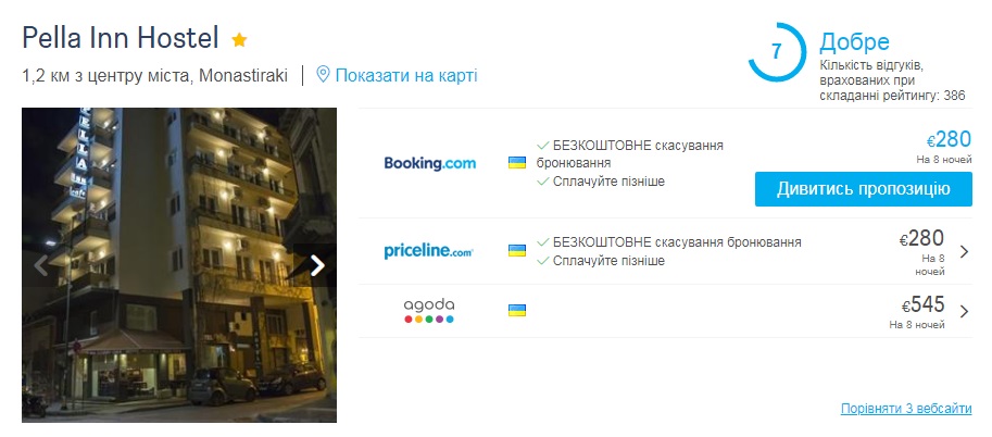 Для комфортнішого проживання – Pella Inn Hostel – від €212 за двомісний номер.