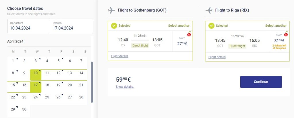 Рига – Гетеборг – Рига (10.04.2024 – 17.04.2024) – €60