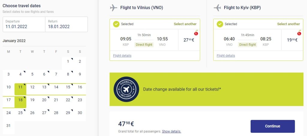 Київ – Вільнюс – Київ (11.01.2022 – 18.01.2022) – €48