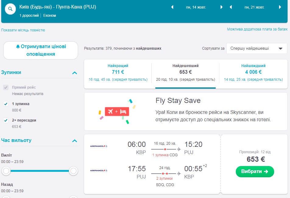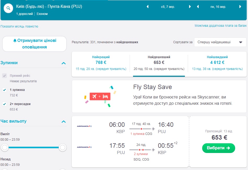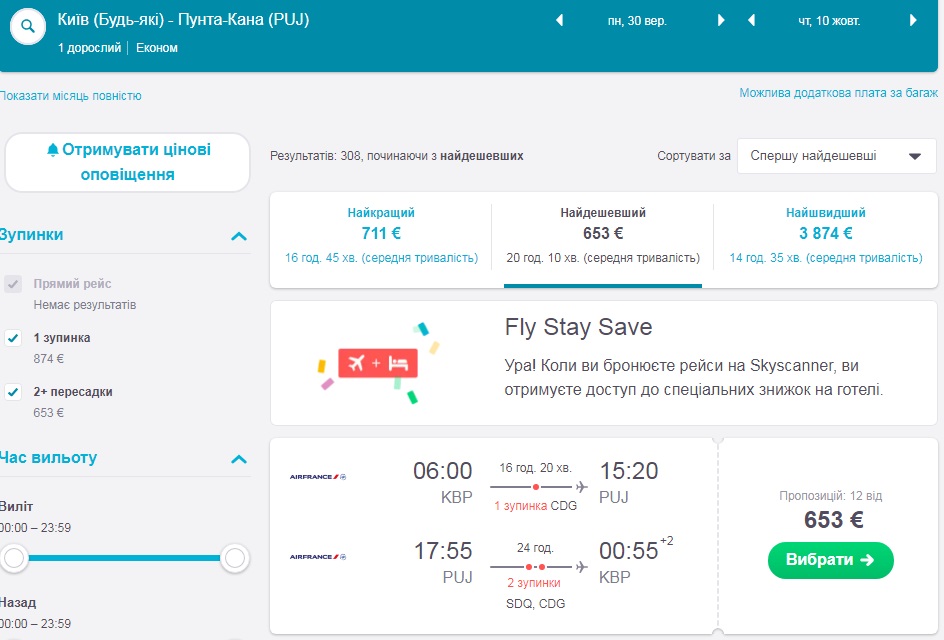 У новому розпродажі, авіакомпанія AirFrance, пропонує промо-тарифи на авіарейси з України на Домінікану. Переліт з Києва у Пунту-Кану – від €653 в обидва боки.