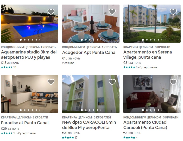 Приклади бронювання житла у Пунта-Кані на період 07.09.2019 — 16.09.2019, 9 ночей: