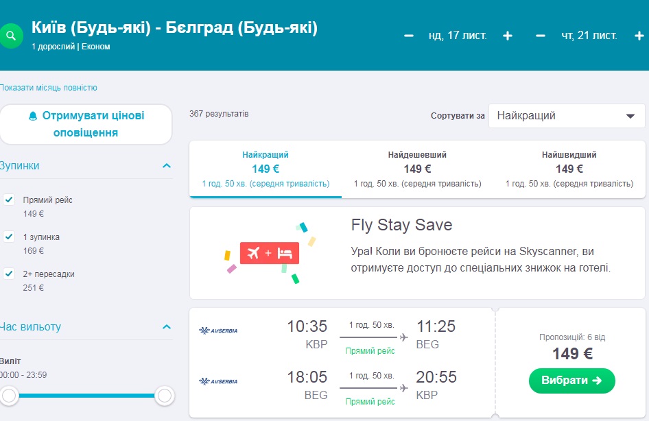 Київ-Белград-Київ (17.11.2019 – 21.11.2019) – €149