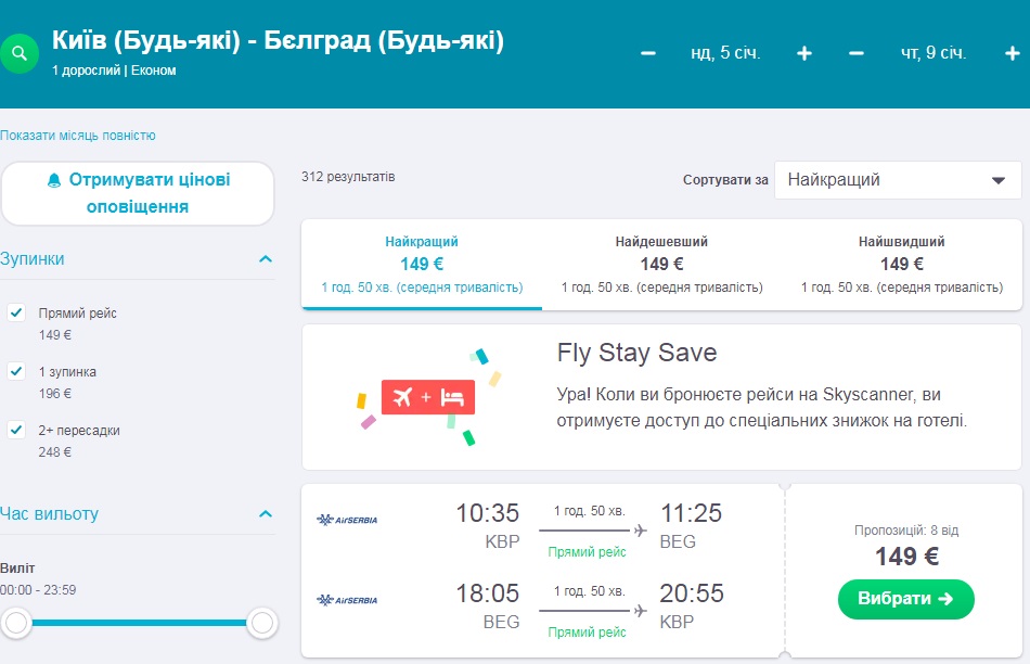 Авіакомпанія AirSerbia проводить швидкий розпродаж квитків на прямий переліт з Києва у Белград. Вартість квитків до сербської столиці – від €149 в обидві сторони.