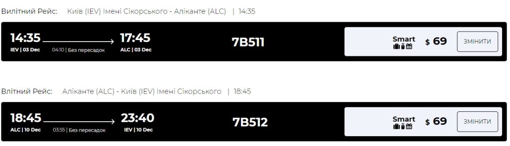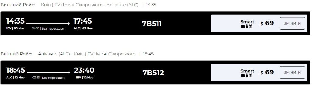 Пропозиція діє на перельоти в тарифному плані SMART, що включає зареєстрований багаж до 23 кг. Вартість квитків Київ – Аліканте – від $69 в один бік або $138 туди-назад.