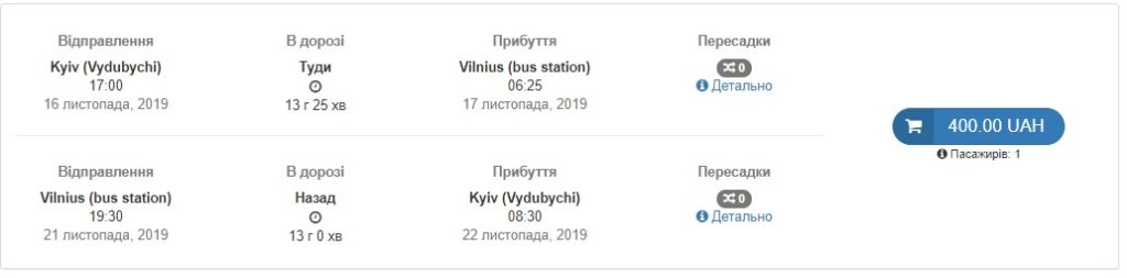 Київ-Вільнюс-Київ (16.11.2019 – 21.11.2019) – ₴400
