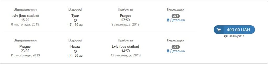 Львів-Прага-Львів (08.11.2019 – 11.11.2019) – ₴400