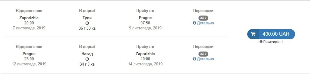 Запоріжжя-Прага-Запоріжжя (07.11.2019 – 12.11.2019) – ₴400