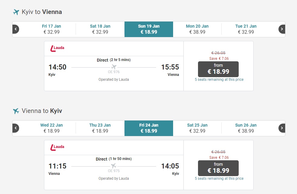 Київ-Відень-Київ (19.01.2020 – 24.01.2020) – €38