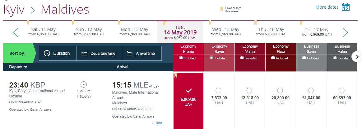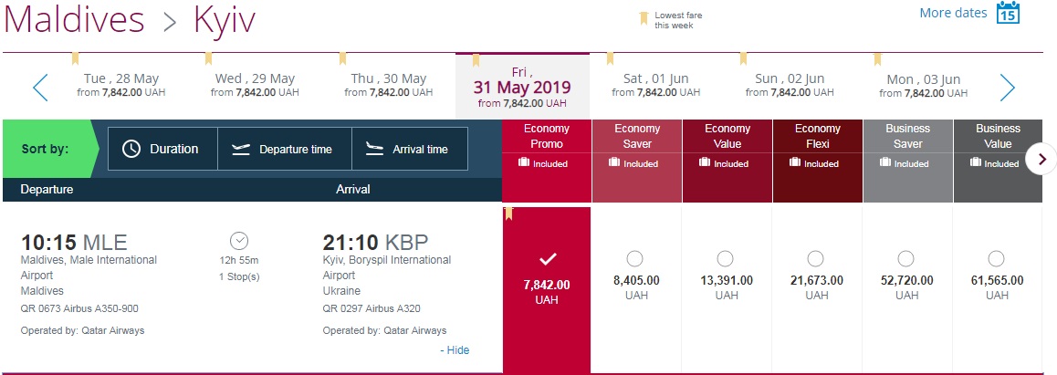 Київ-Мальдіви-Київ (14.05.2019 – 31.05.2019) – €461