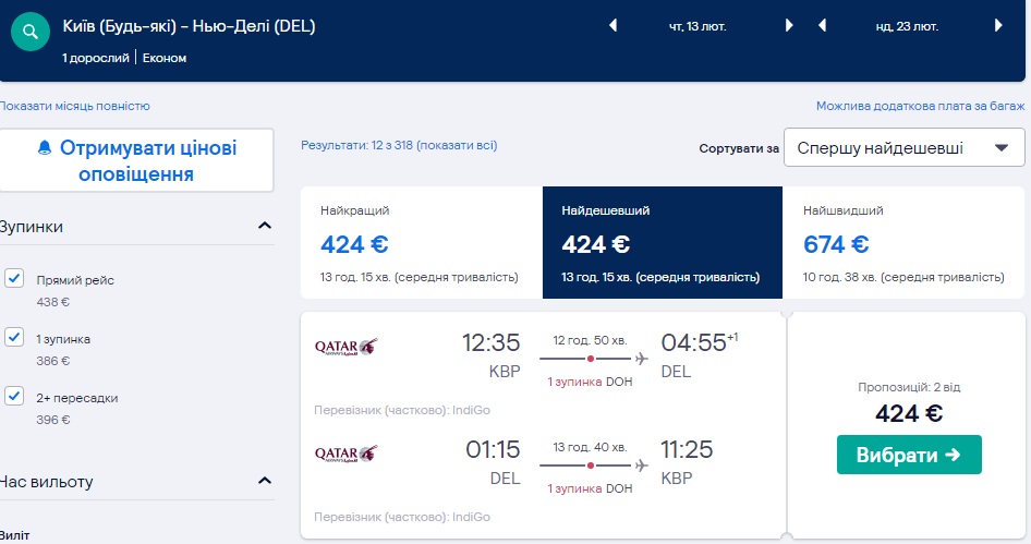 Київ-Делі-Київ (13.02.2020 – 23.02.2020) – €424