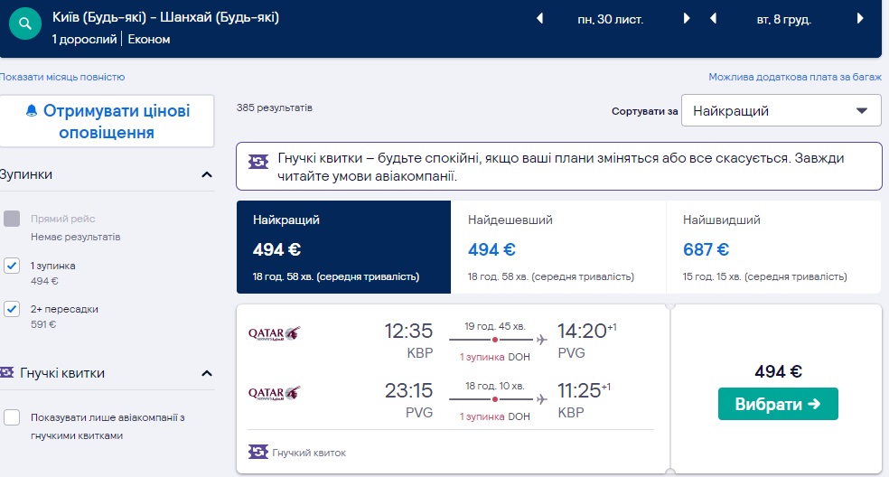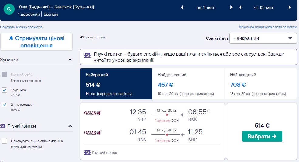 Авіакомпанія Qatar Airways пропонує гнучкі квитки на різні авіарейси до кінця року з Києва у міста Азії.