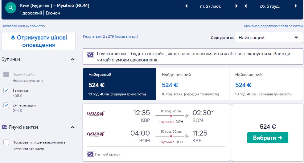 Київ-Мумбай-Київ (27.11.2020 – 05.12.2020) – €524