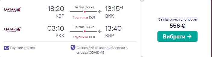 Київ – Бангкок – Київ (07.04.2021 – 19.04.2021) – €556