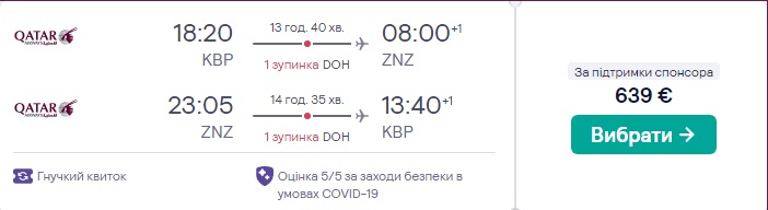 Київ – Занзібар – Київ (19.06.2021 – 03.07.2021) – €639