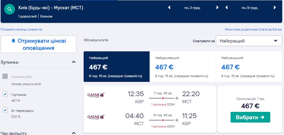 Київ-Мускат-Київ (02.12.2019 – 09.12.2019) – €467